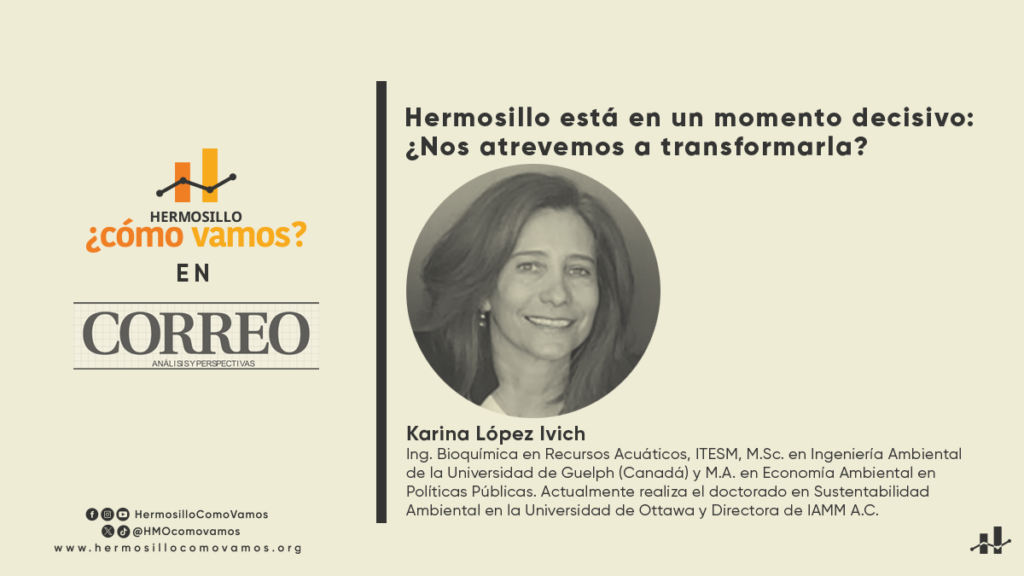 Hermosillo ¿Cómo Vamos? es una organización democrática e incluyente, la opinión del autor(a) en esta colaboración no representa necesariamente la postura, ideología, pensamiento o valores de la organización desde donde promovemos el derecho a la libre expresión, la construcción de opiniones y la formación de pensamiento crítico. Estamos abiertos al diálogo, la deliberación y la construcción de propuestas para la atención a los desafíos locales con el propósito de que Hermosillo sea un mejor lugar para vivir.